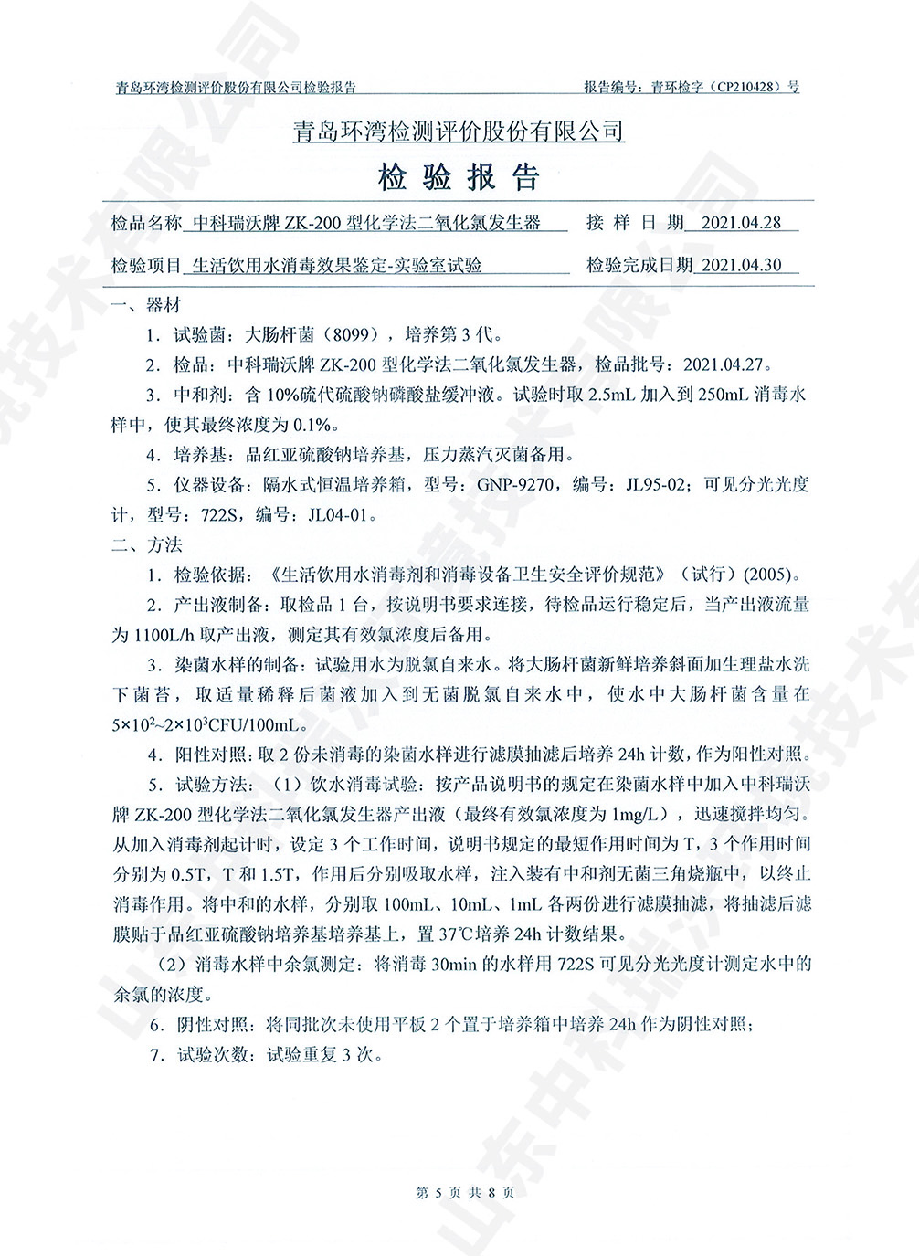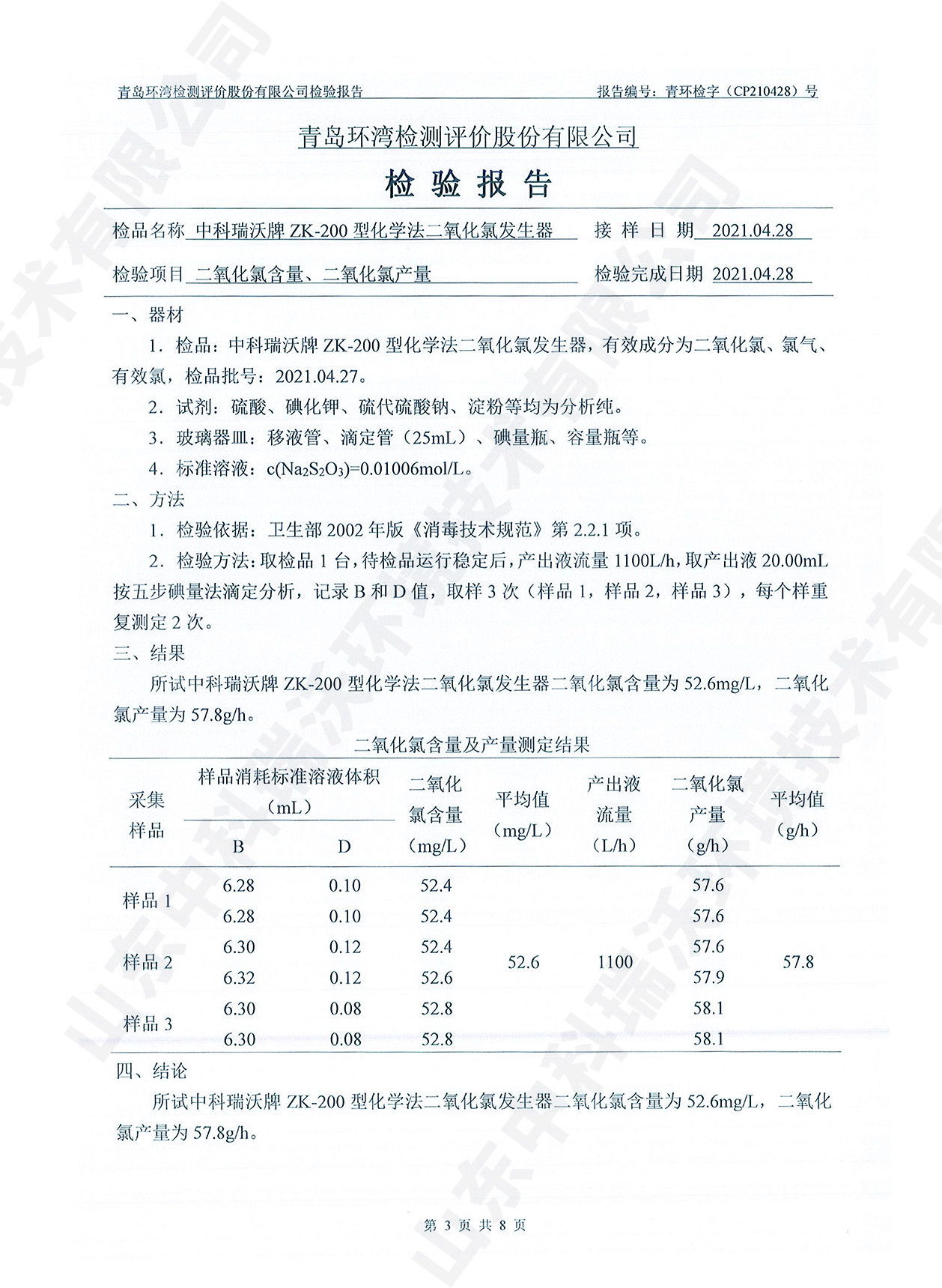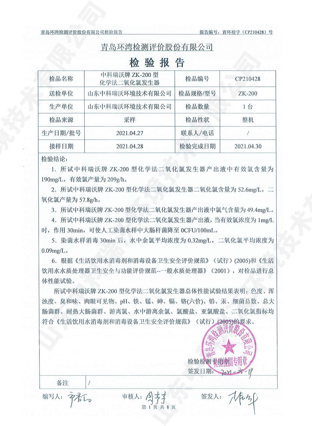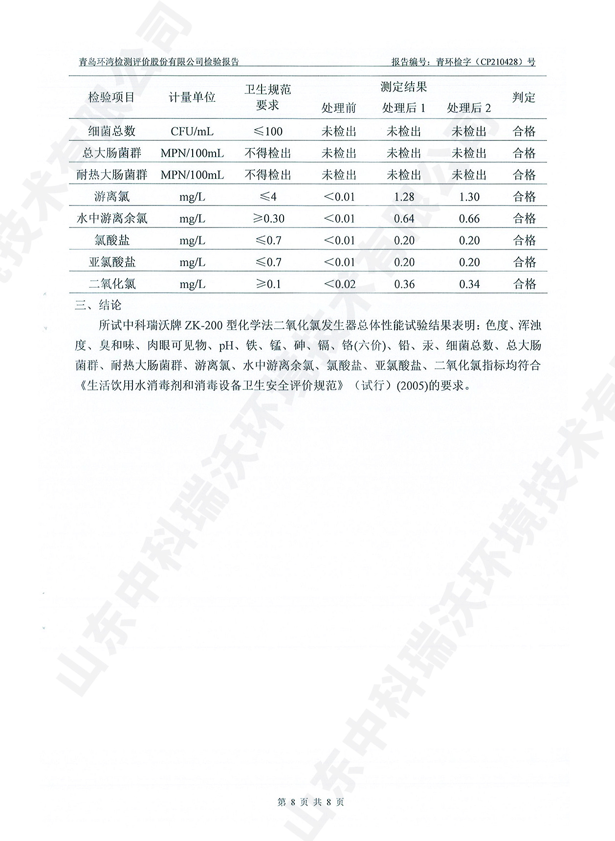 飲水消毒設(shè)備檢測報(bào)告~二氧化氯消毒